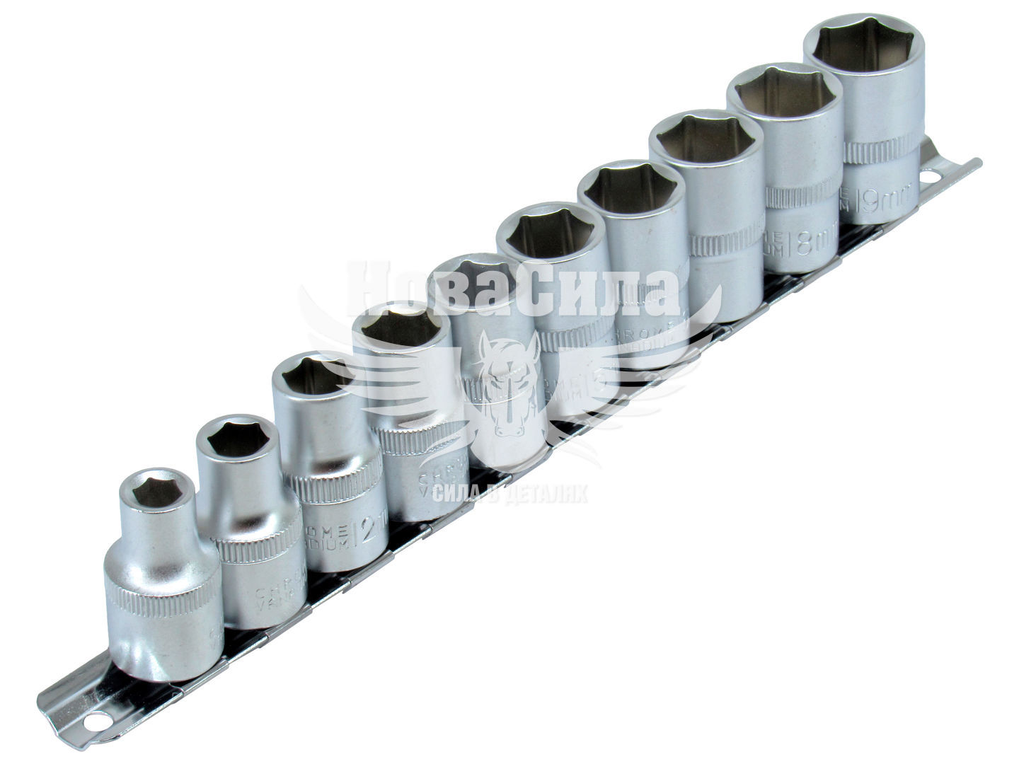 Набір голівок 10 шт. 1/2 ТМ INTERTOOL застосовується для закручування і відкручування гайок і болтів з шестигранною голівкою. Виготовлені з хром-ванадієвої сталі, яка забезпечує високі експлуатаційні показники і захист від корозії. Запобігають стиранню граней, забезпечують високий крутильний момент. Всі головки розміщені на спеціальній планці-кріпленні.