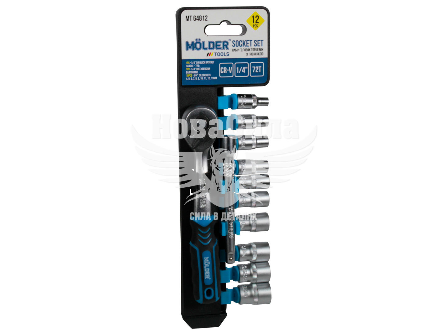 Набір головок торцевих з тріскачкою і подовжувачем MOLDER 1/4 12 предметів (MT64812)