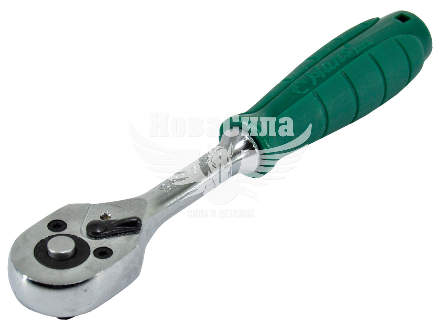 Рукоятка у тріскачки металева з виїмками. Це робить її більш комфортною в роботі. Також трещотка НЕ ??буде вислизати з рук майстра під час інтенсивної роботи. Дозволить виконати всі завдання і роботи в обмеженому просторі і без достатнього доступу.