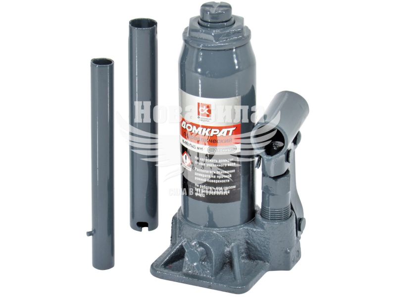 Гідравлічний домкрат DK TDK2 - універсальний вантажопідйомний механізм, призначений для підйому, утримання і фіксації автомобіля, в процесі проведення ремонтних і діагностичних робіт. Модель TDK2 пляшкового типу, має максимальну вантажопідйомність 3тонни, що цілком достатньо для легкового автомобіля. Перевагою даного домкрата є хороша висота підйому 345мм і висота підхоплення 180мм, що дозволяє розширити область застосування і ефективно виконувати ремонтні роботи. Подовжена металева приводная ручка, складаний конструкції, передає посилення на нагнітає насос, де нагнітається робоча рідина, яка забезпечує плавний хід при здійсненні підйому і опускання вантажу. Конструкція домкрата представлена ??в формі пляшки, корпус якого виконаний з міцного металу. Поверхня корпусу покрита спеціальним лакофарбовим покриттям, для запобігання процесу корозії металу і забезпечує тривалий термін служби пристрою. Завдяки широкій опорній поверхні, домкрат досить стійкий і захищений від бокового ковзання.