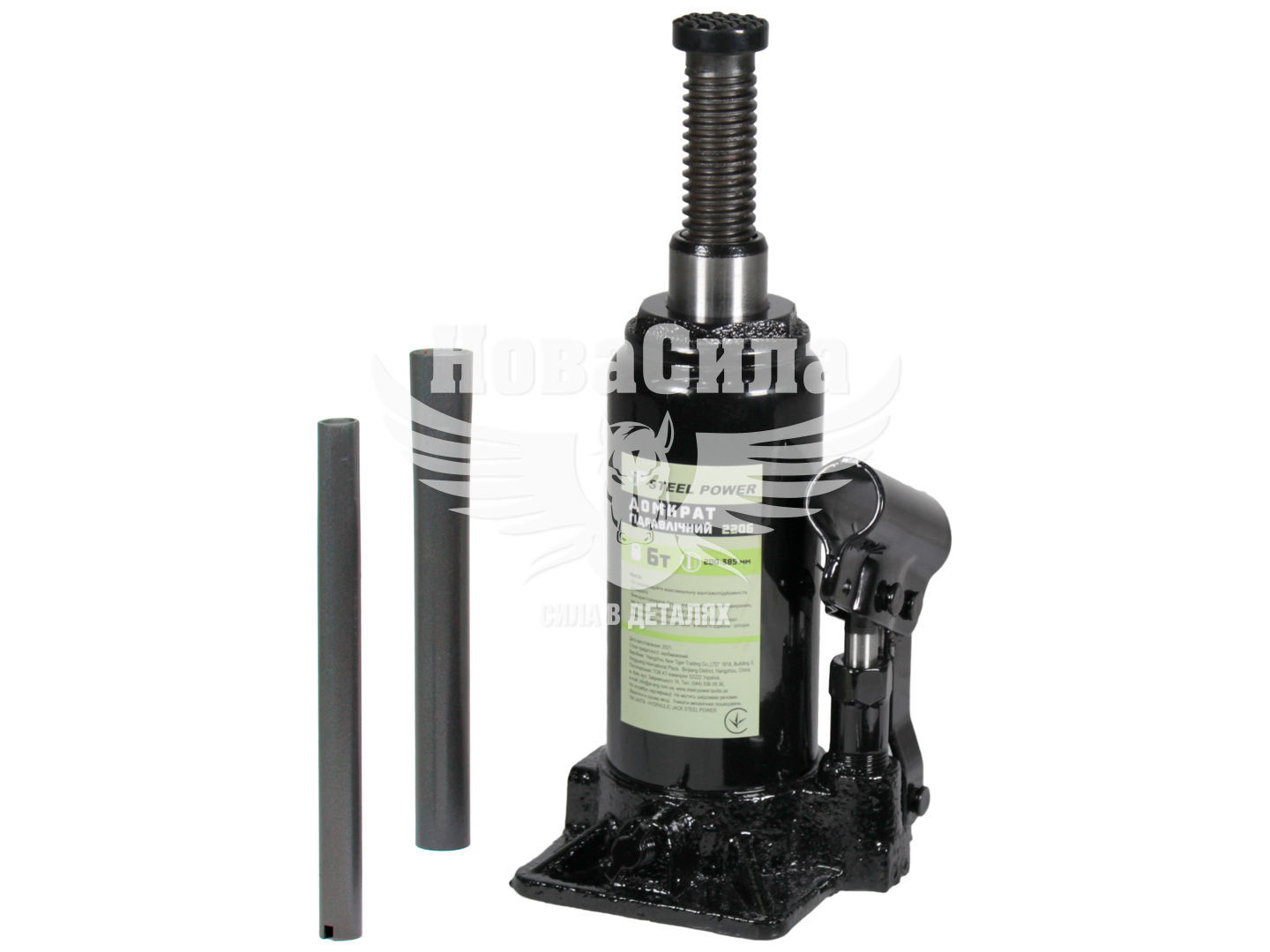 Пляшковий домкрат STEEL POWER SPR 2206 підходить для побутового та професійного використання. За рахунок невеликих габаритів буде корисним у дорозі, оскільки є автономним і не займає багато місця у багажнику авто. Є універсальним завдяки тому, що піднімає вагу до 6 т. За допомогою міцної металевої конструкції можна підняти автомобіль на висоту в межах від 200 мм до максимальної точки підйому 385 мм. Модель передбачає мінімальні зусилля для підняття транспорту, а за допомогою гідравлічної системи забезпечує безпечний та швидкий спуск. Опорна поверхня домкрата широка, має рифлену насічку для запобігання непередбачуваному ковзанню при упорі в деталь автомобіля, а сама конструкція інструменту має велику площу опорного майданчика, тим самим роблячи пляшковий домкрат STEEL POWER SPR 2206 стійким і надійно захищеним від бокового ковзання. У комплекті поставляється міцна та зручна ручка накачування, для досягнення максимально комфортної роботи з домкратом. Слід зазначити, що під час роботи домкрата рекомендується використовувати страхові засоби, оскільки вага вантажу, що піднімається, дуже велика.