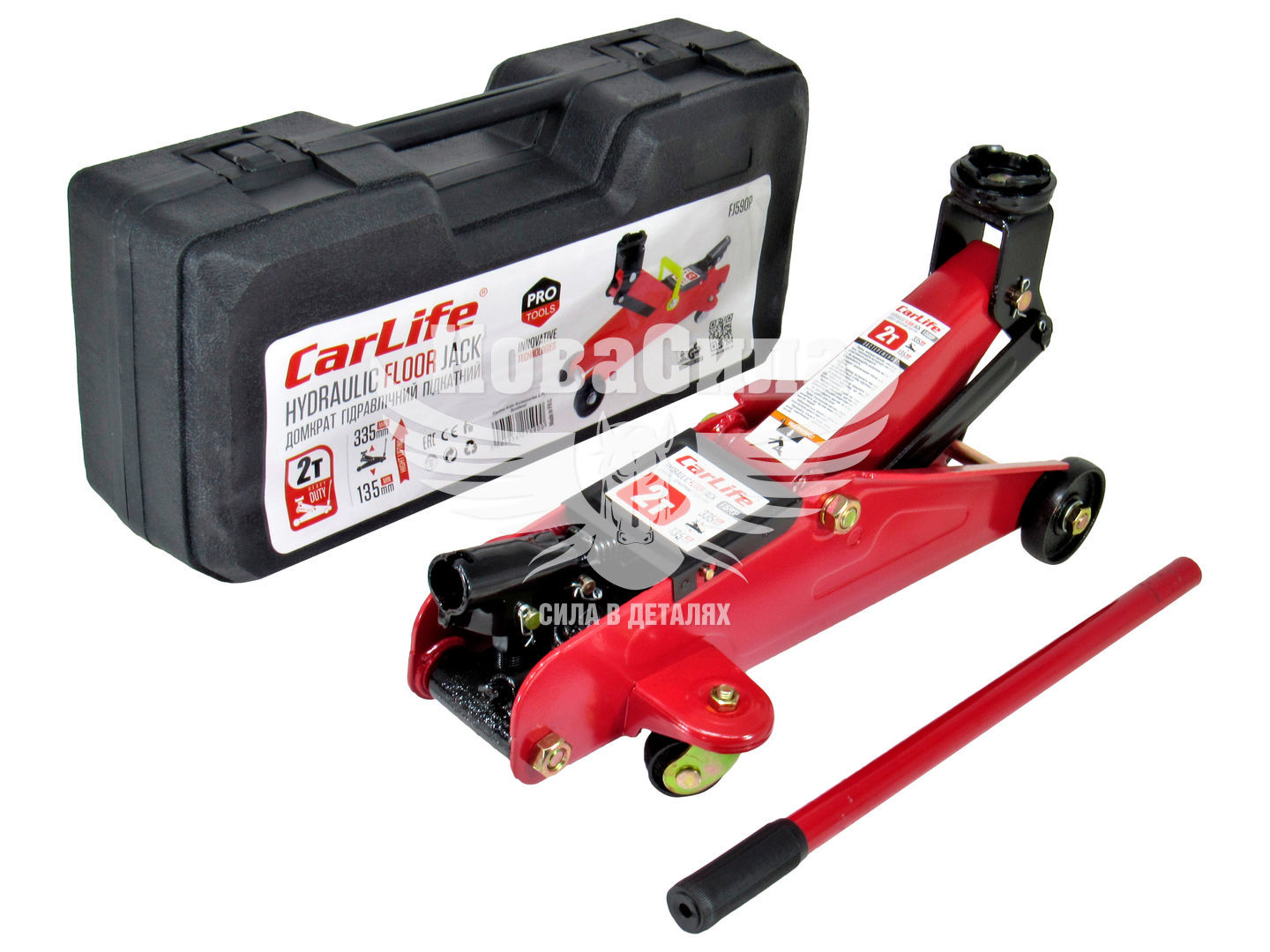 Домкрат підкатний 2т. (CarLife) жаба пластм. упак (вис. під. 335мм.)