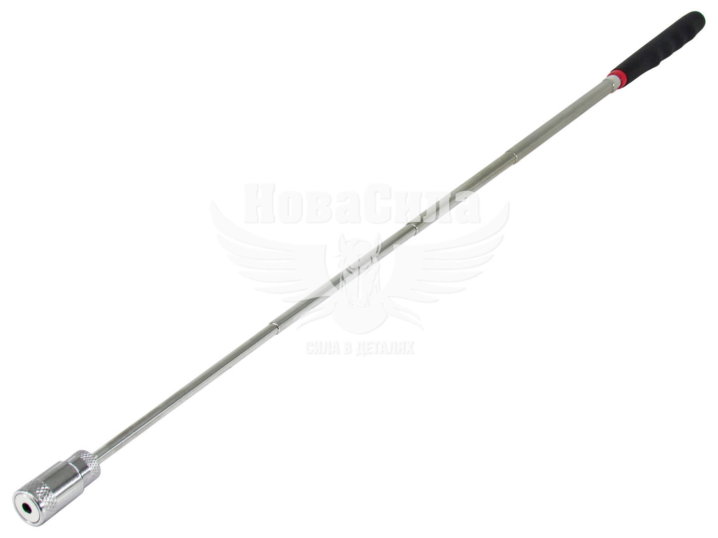 Користуватися магнітом тривалий час цілком комфортно, завдяки невеликій вазі. Магніт має значну вантажопідйомність. Тримач зручно і надійно фіксується в руці завдяки ергономічній ручці. При невеликій вазі має загальну довжину 190-680 мм, що є плюсом при завданні дістати деталь максимально далеко від точки до якої пролазить рука. Конструкція стрижня телескопічна, що буквально не залишає для захоплення недоступних цілей. Для зручності вилучення деталей з погано освітлених місць є LED-підсвічування, що працює від 2-х AA батарейок (купуються окремо).