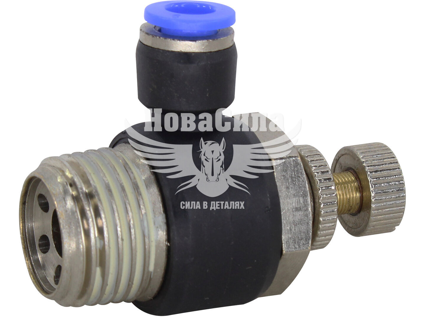 З'єднувач (кран) трубки ПВХ з зовн. різьбою Г-подібний пластик 1/2х6мм. (Airkraft) з регулюванням подачі повітря