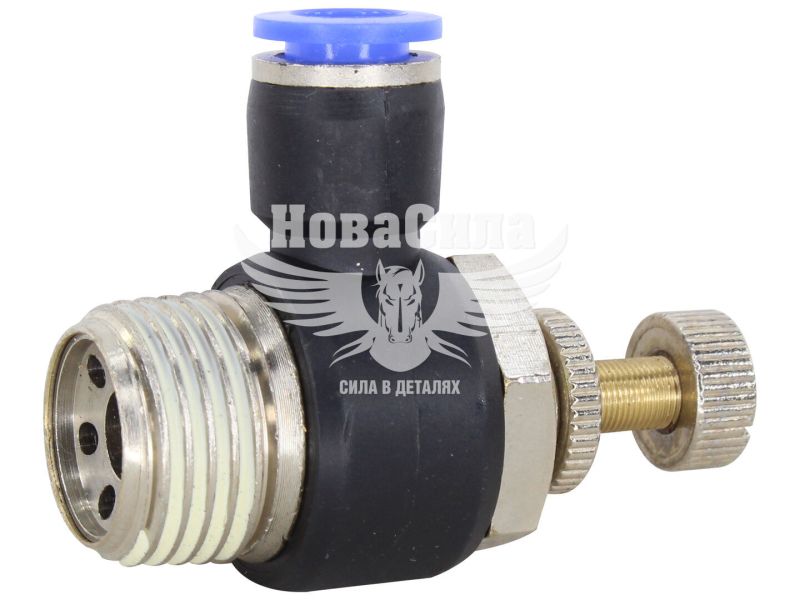 З'єднувач (кран) трубки ПВХ з зовн. різьбою Г-подібний пластик 1/2х8мм. (Airkraft) з регулюванням подачі повітря