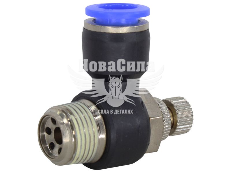 З'єднувач (кран) трубки ПВХ з зовн. різьбою Г-подібний пластик 3/8х10мм. (Airkraft) з регулюванням подачі повітря