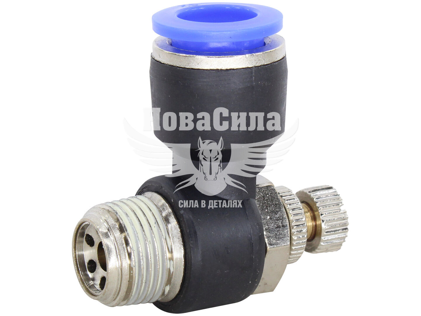 З'єднувач (кран) трубки ПВХ з зовн. різьбою Г-подібний пластик 3/8х12мм. (Airkraft) з регулюванням подачі повітря