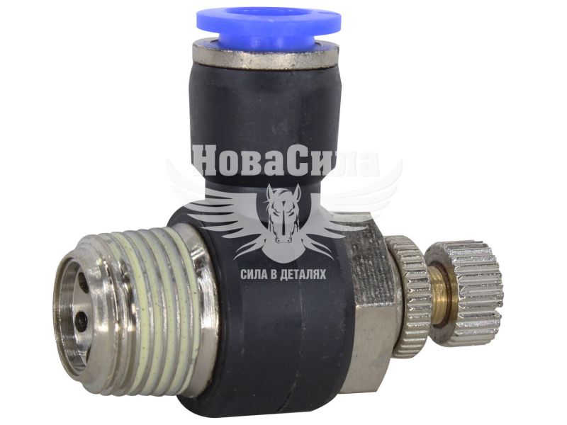 З'єднувач (кран) трубки ПВХ з зовн. різьбою Г-подібний пластик 3/8х8мм. (Airkraft) з регулюванням подачі повітря