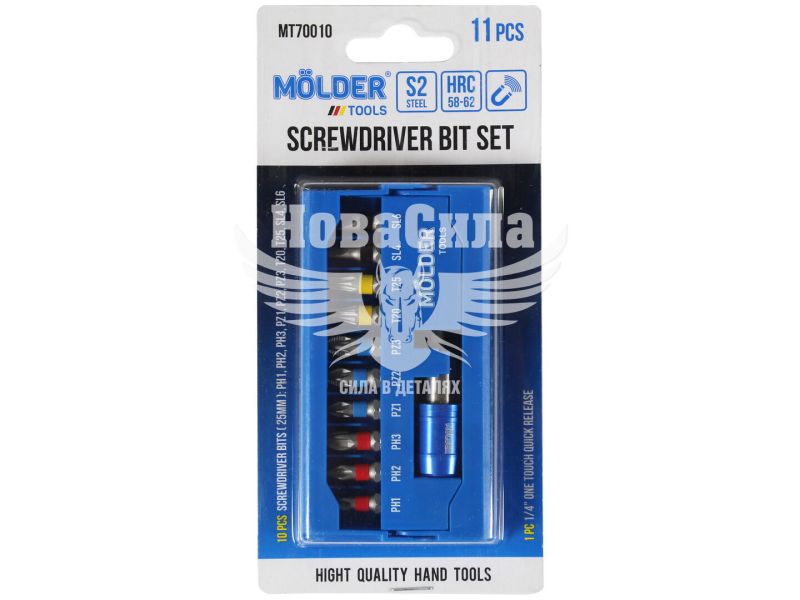 Набір біт 11 од. 50мм. з тримачем магнітним (Molder Tools) кольорове маркування