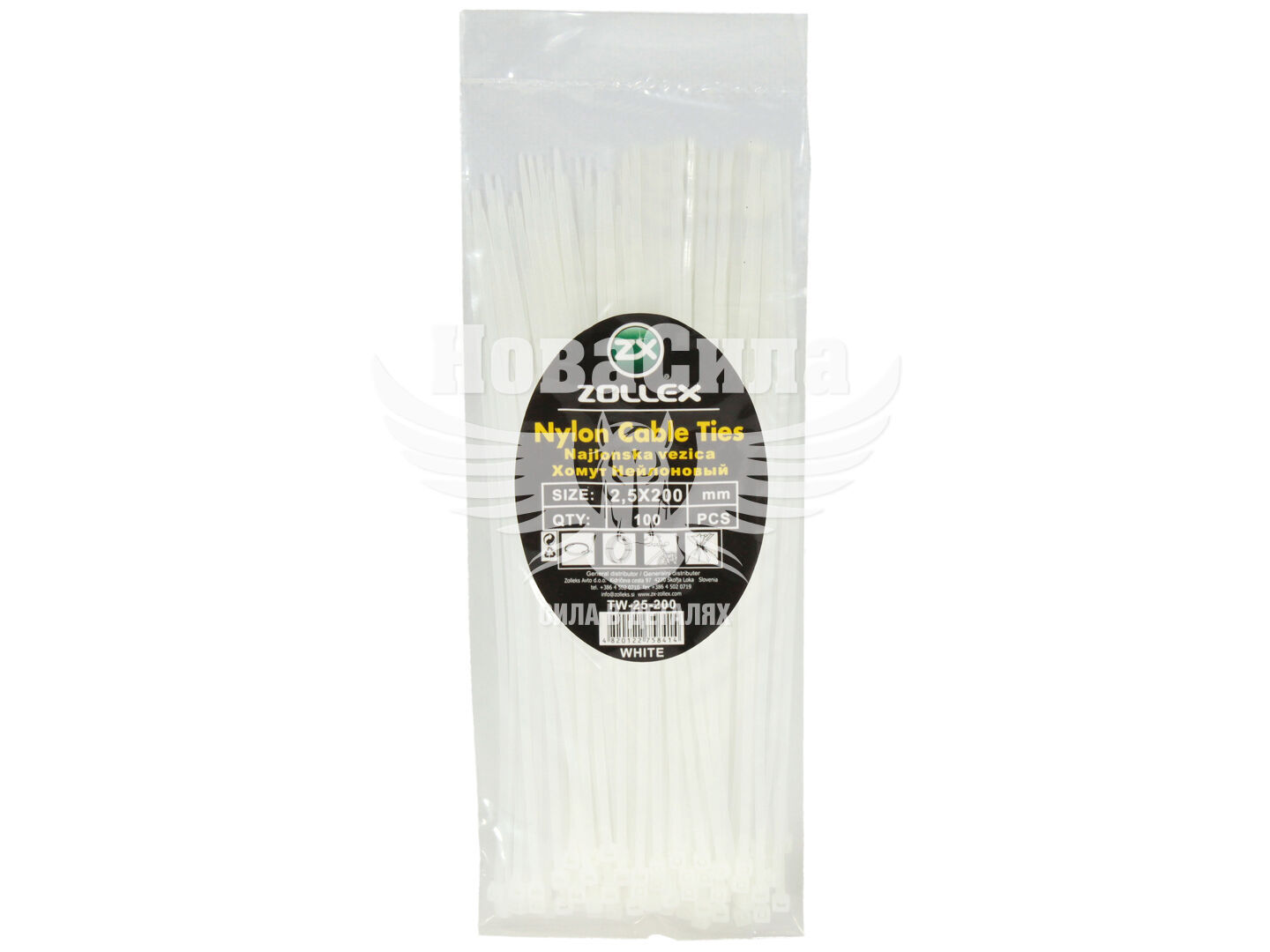 Хомут пластиковий білий 2,5х200 (Zollex) (уп. 100шт.)