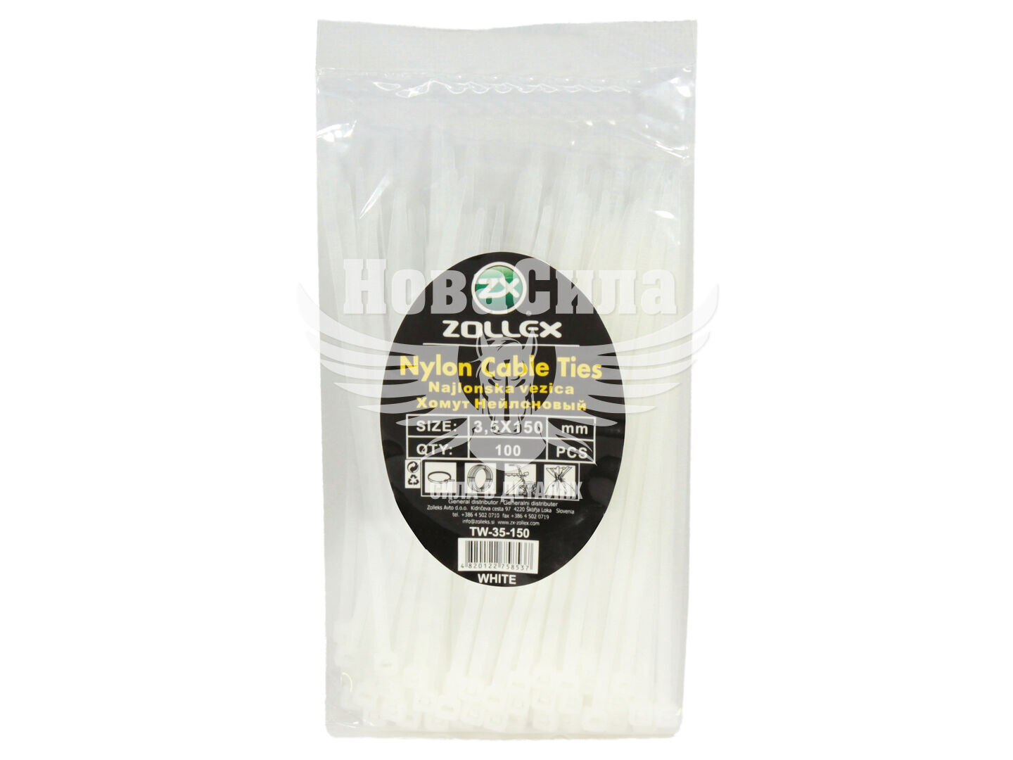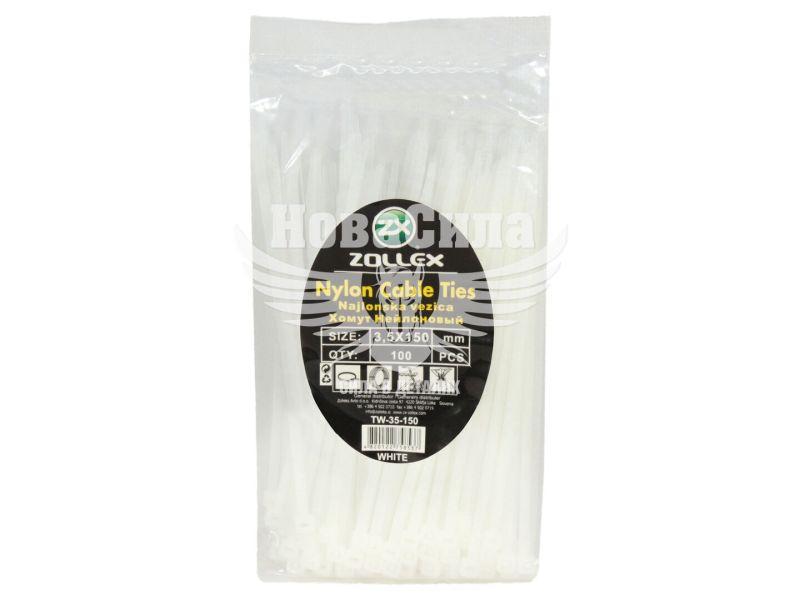 Хомут пластиковий білий 3,5х150 (Zollex) (уп. 100шт.)