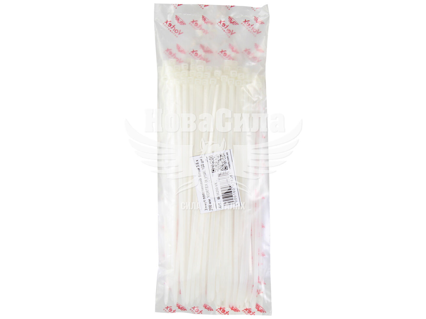 Хомут пластиковий білий 3,6х200 (Vortex) (уп. 100шт.)