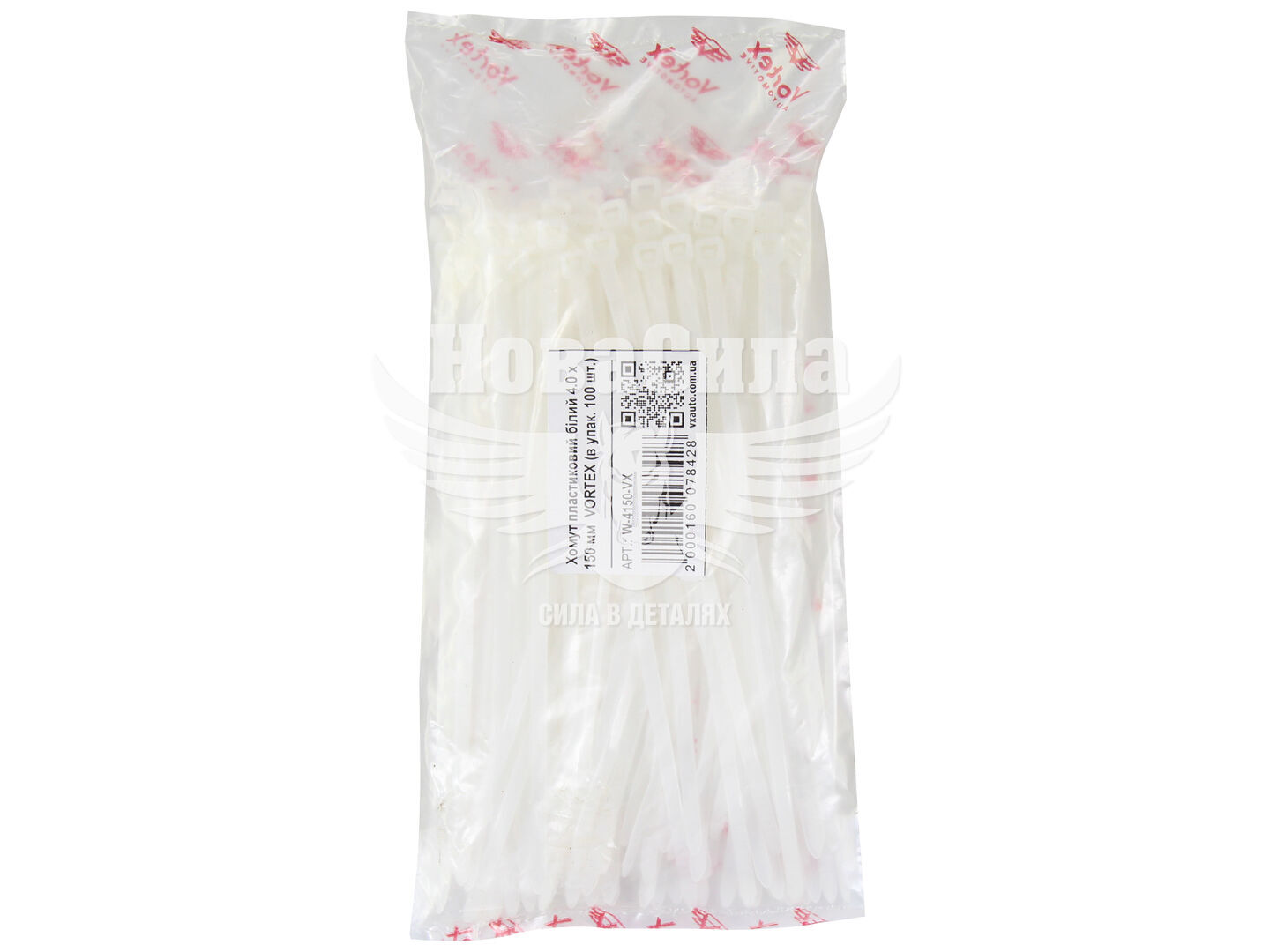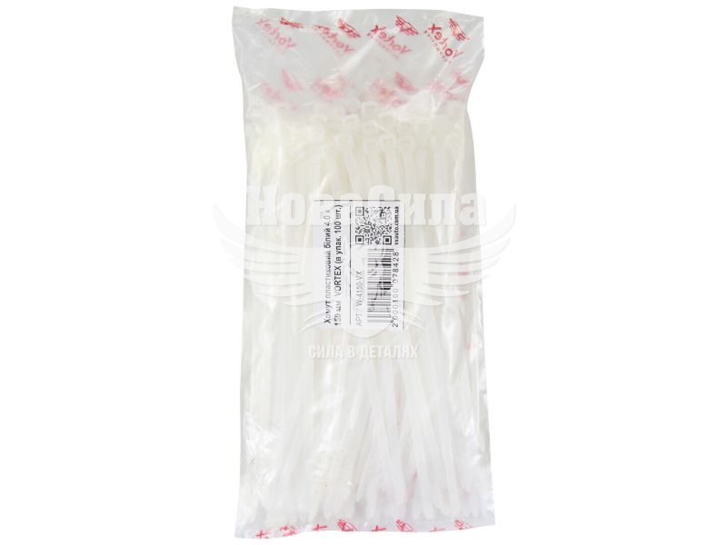 Хомут пластиковий білий 4,0х150 (Vortex) (уп. 100шт.)