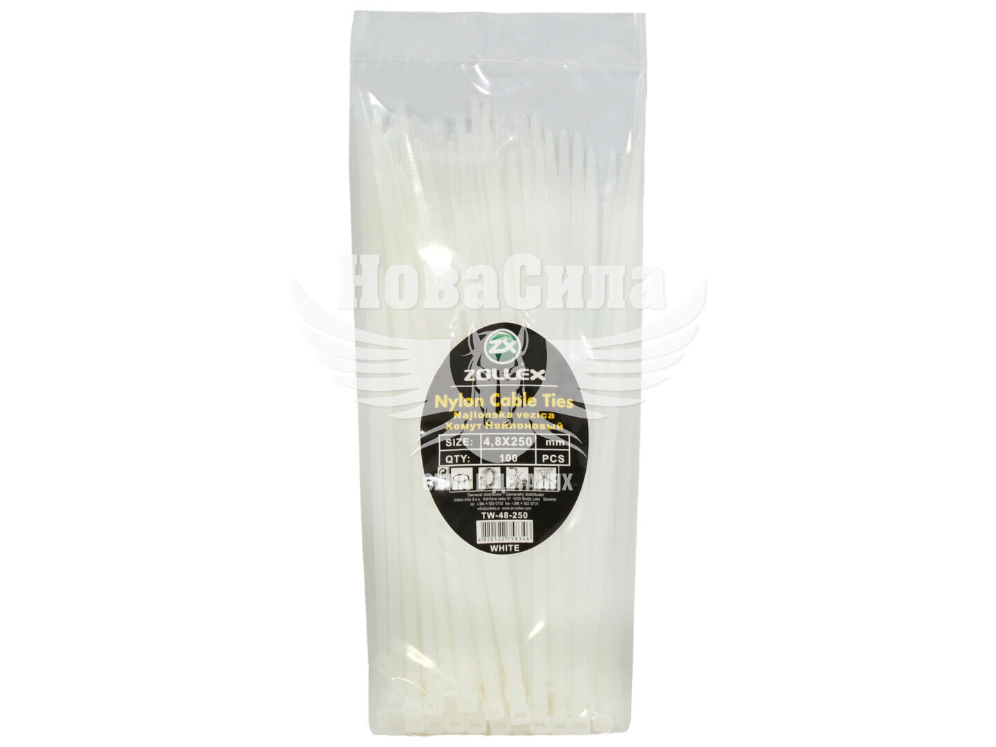 Хомут пластиковий білий 4,8х250 (Zollex) (уп. 100шт.)