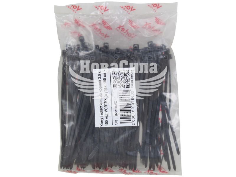 Хомут пластиковий чорний 3,0х100 (Vortex) (уп. 100шт.)