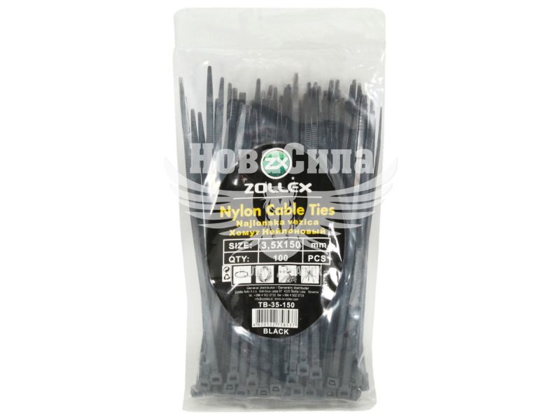 Хомут пластиковий чорний 3,5х150 (Zollex) (уп. 100шт.)