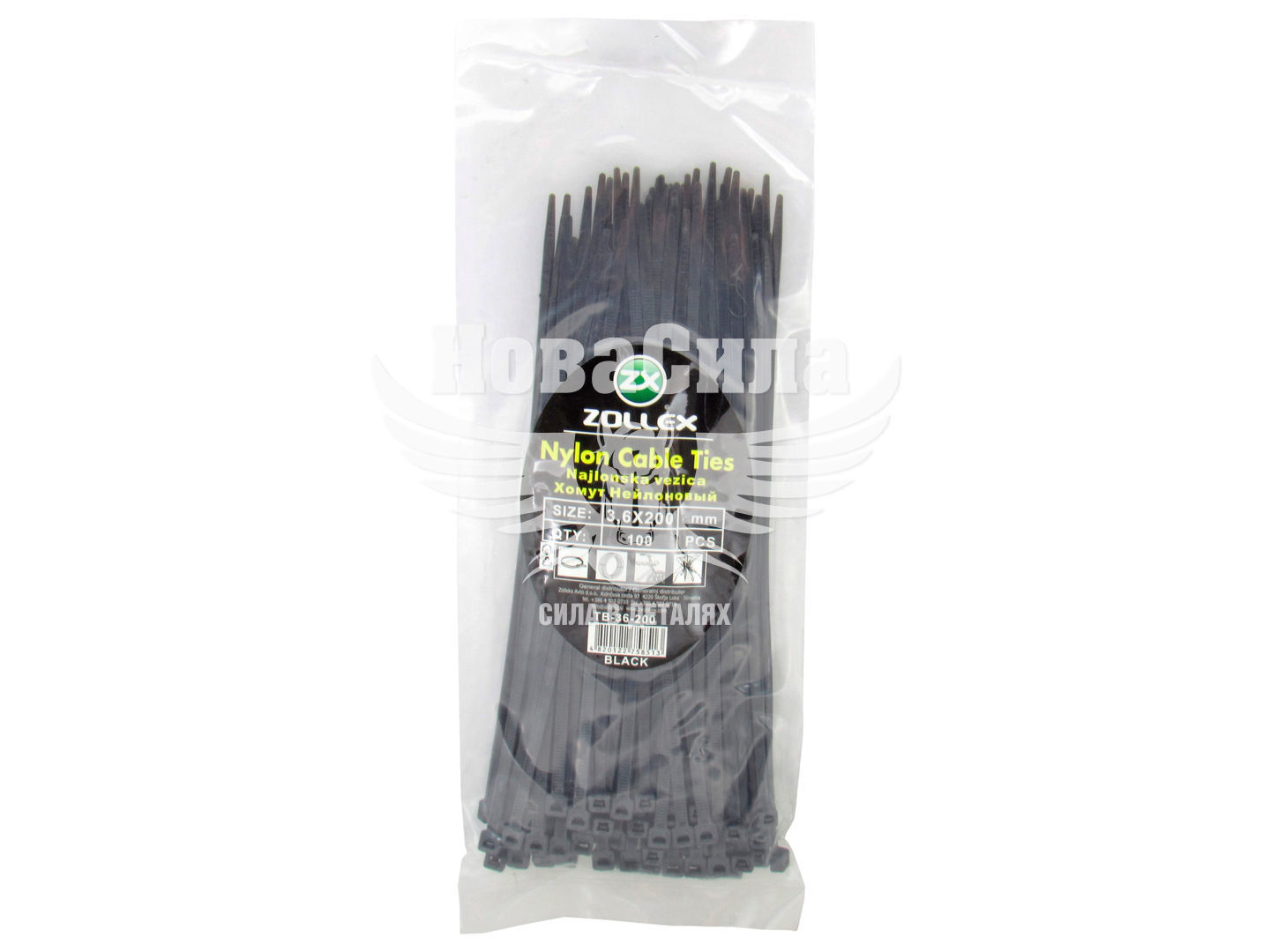 Хомут пластиковий чорний 3,6х200 (Zollex) (уп. 100шт.)
