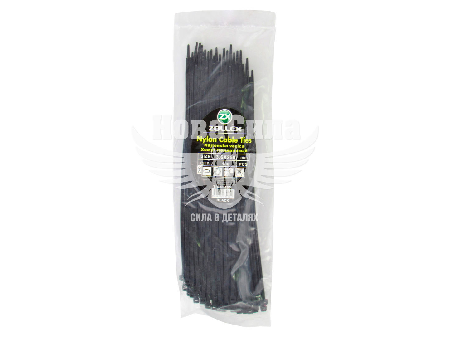 Хомут пластиковий чорний 3,6х250 (Zollex) (уп. 100шт.)