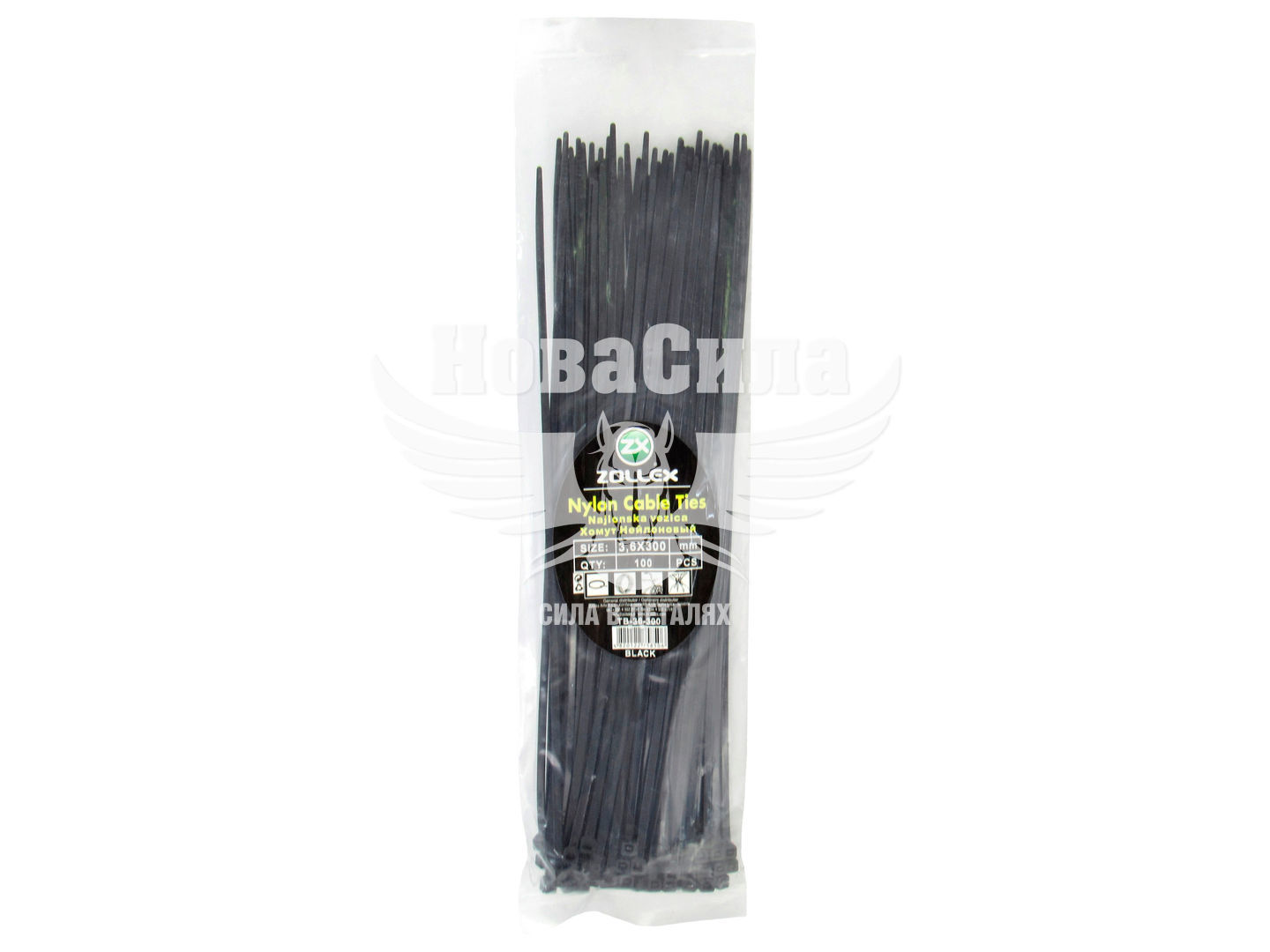 Хомут пластиковий чорний 3,6х300 (Zollex) (уп. 100шт.)