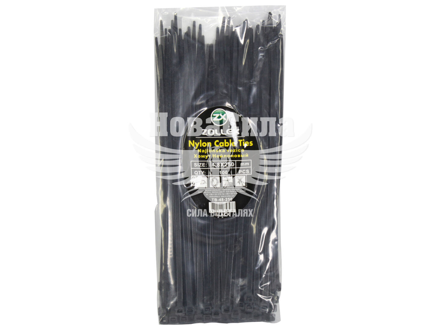 Хомут пластиковий чорний 4,8х250 (Zollex) (уп. 100шт.)