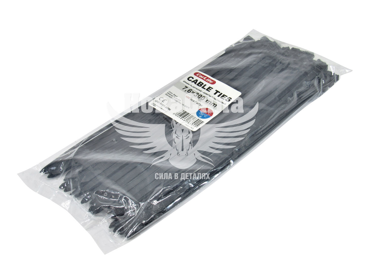 Хомути Carlife виготовлені з пластику, який володіє міцністю, пластичністю, стійкістю до горючих речовин, руйнування і старіння. Одним з переваг пластикових хомутів є широкий діапазон температур, при яких вони можуть використовуватися, а саме від -35 до +85 градусів. Мінімальна температура, при якій допускається монтаж хомутів, становить -10 градусів, при температурі нижче не рекомендується встановлювати стяжки так це може в подальшому позначитися на якості фіксації. Пластик, з якого виготовлені хомути, володіє високою гнучкістю, що дозволяє фіксувати навіть тонкі дроти, так як мінімальний діаметр петлі становить кілька міліметрів.