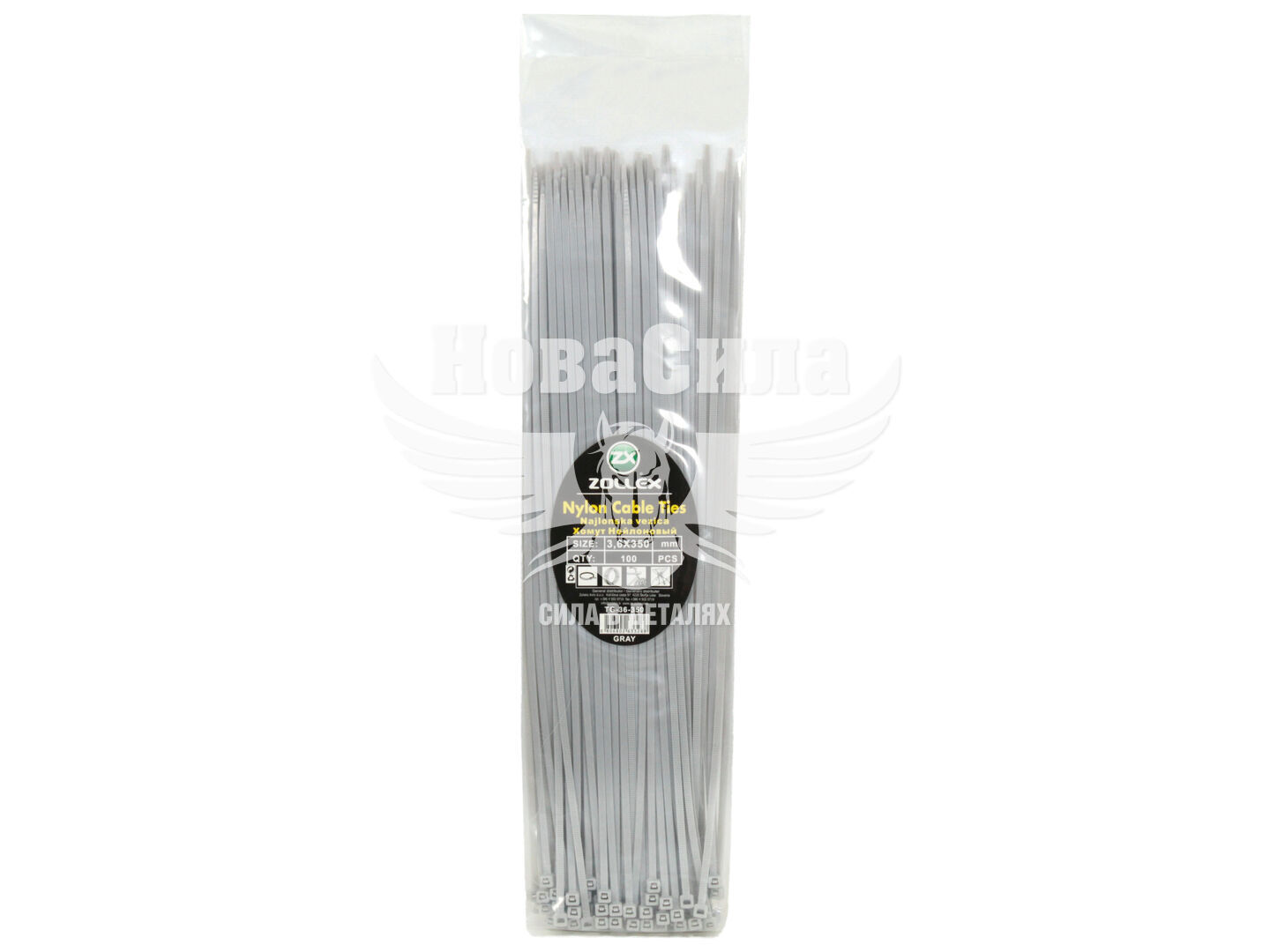Хомут пластиковий сірий 3,6х350 (Zollex) (уп. 100шт.)
