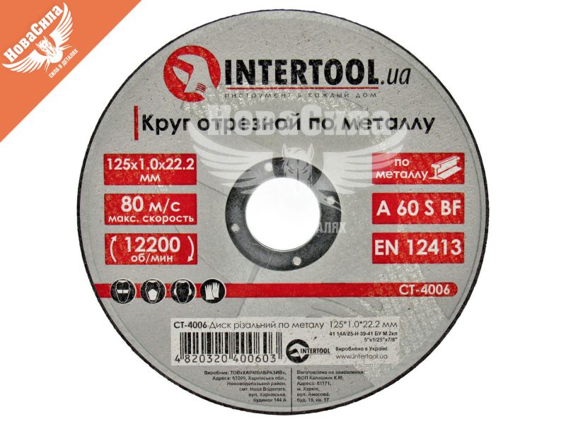 Круг відрізний 125х1.0х22.2 по металу (Intertool)