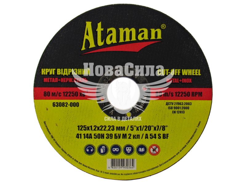Круг відрізний 125х1.2х22.23 по металу (Ataman)