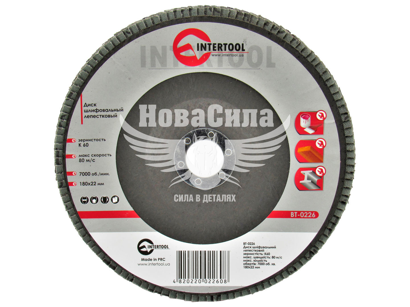 Диск шліфувальний пелюстковий 180x22мм К-60 (Intertool)