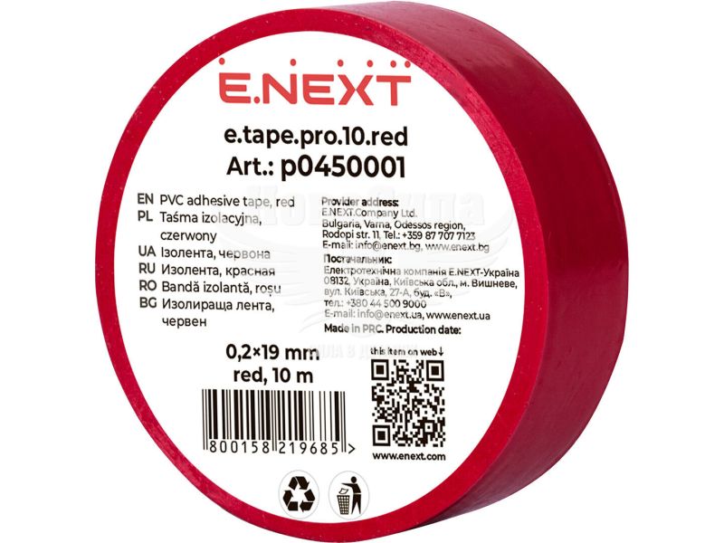 Ізолента E.NEXT e.tape.pro.10.red із самозагасаючого ПВХ, червона (10м)