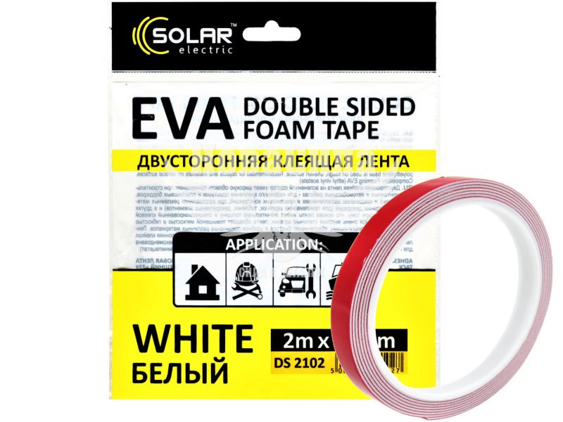 Скотч двохстор. 10мм. 2м. (Solar) EVA (білий)