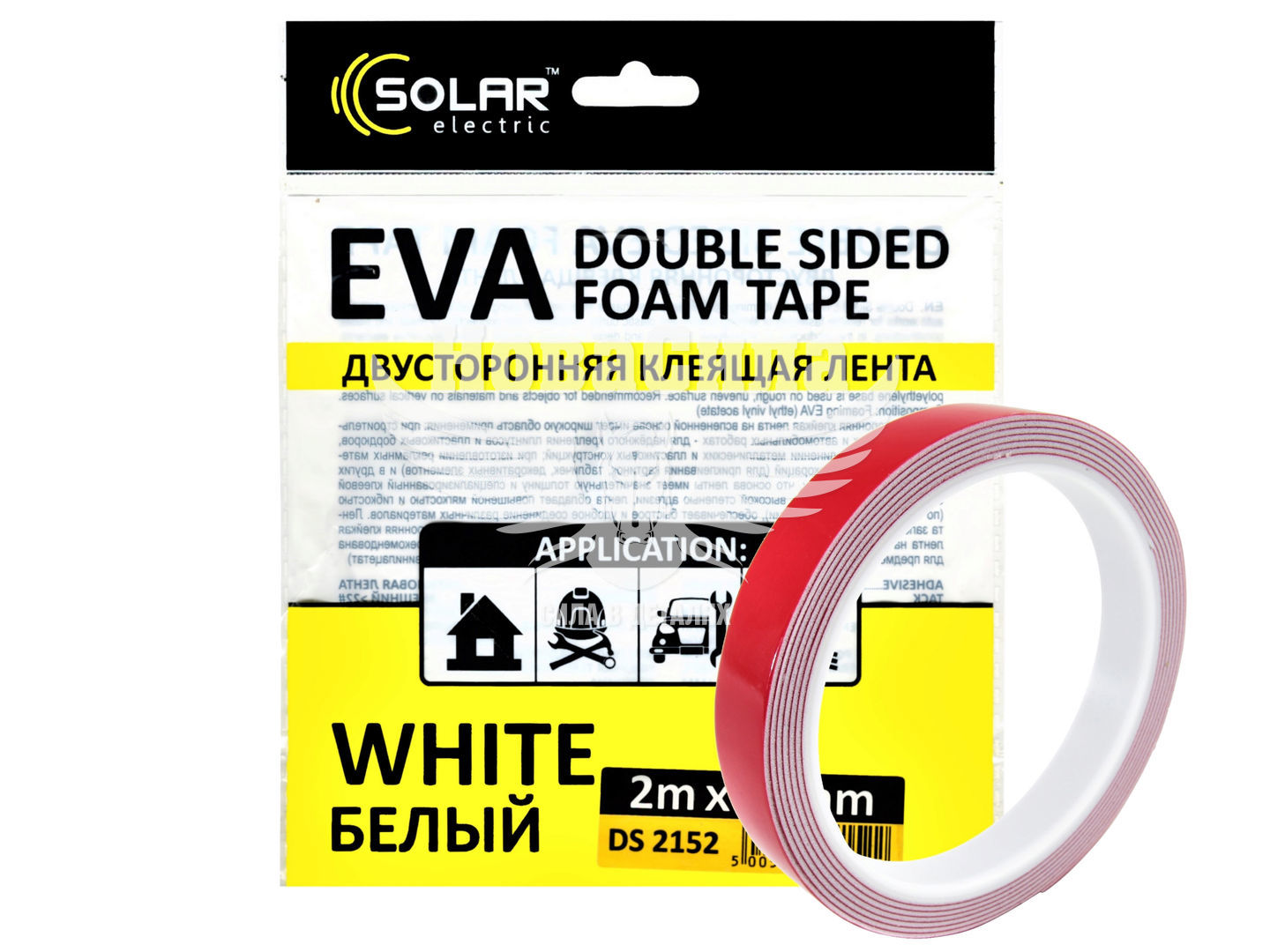 Скотч двохстор. 15мм. 2м. (Solar) EVA (білий)