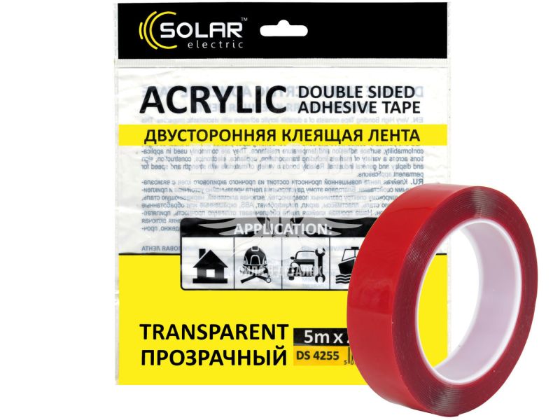 Скотч двохстор. 25мм. 5м. (Solar) Acrylic (прозорий підс.)