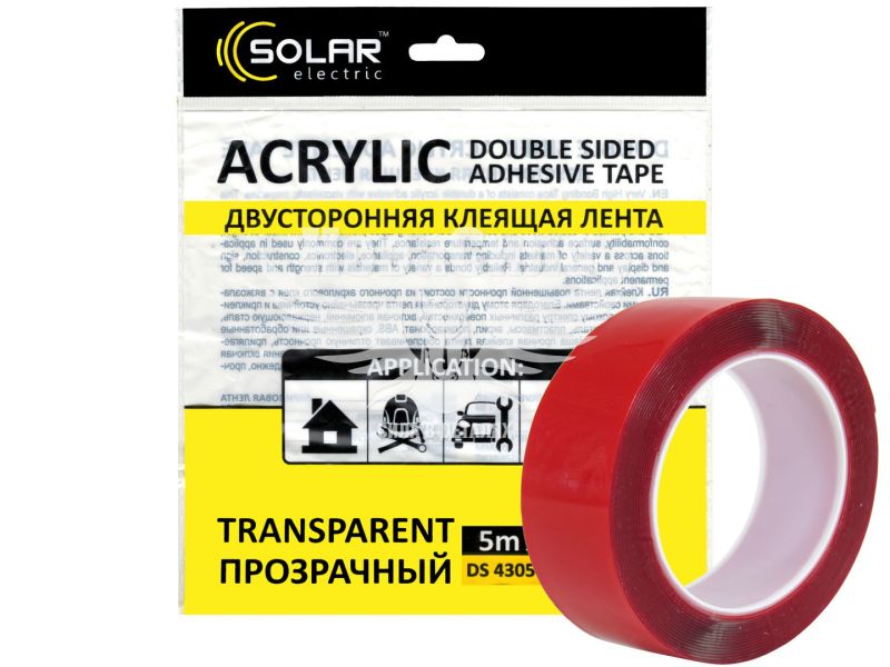 Скотч двохстор. 30мм. 5м. (Solar) Acrylic (прозорий підс.)