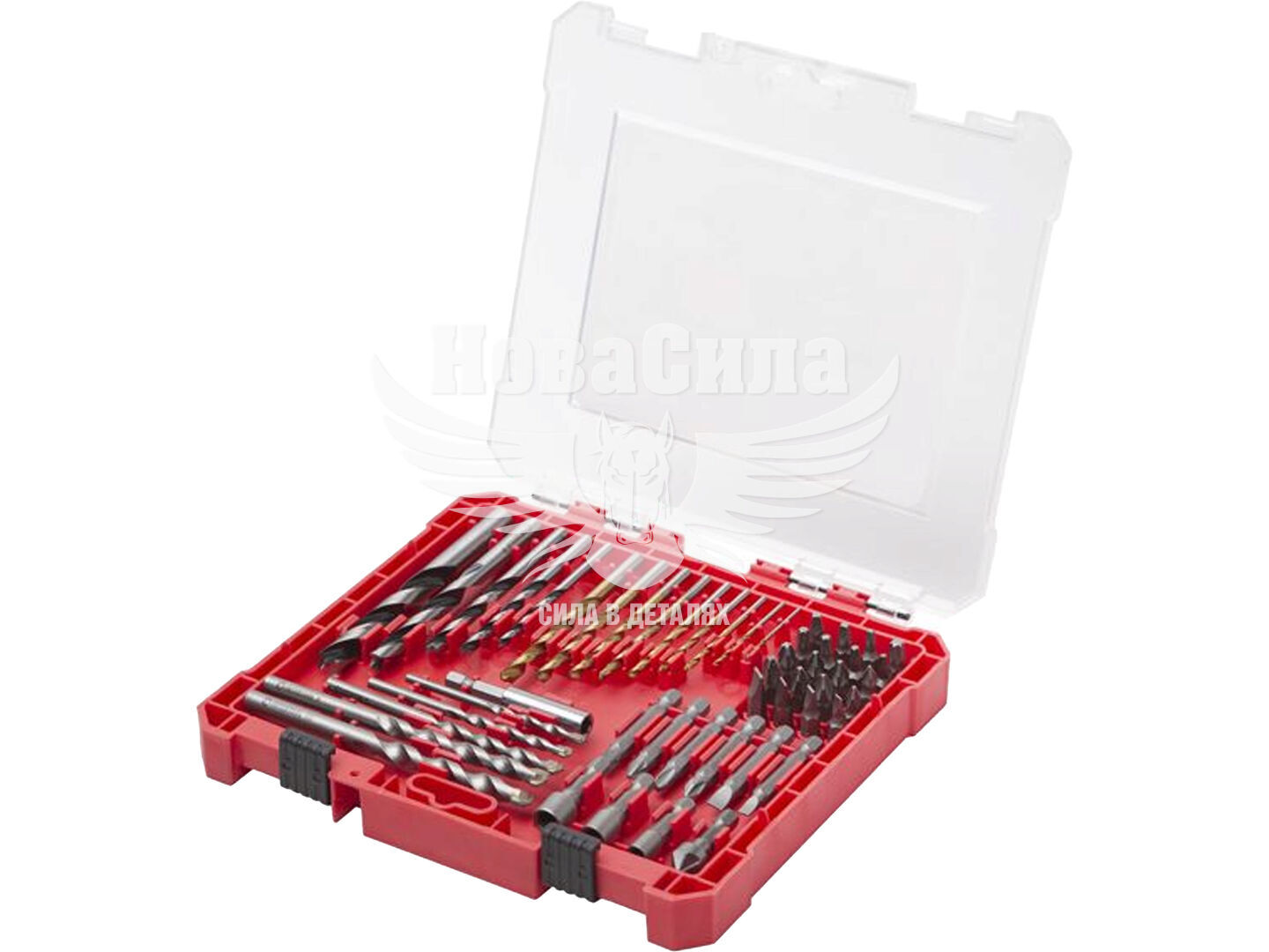 У комплект входять свердла для різних типів матеріалів, викруткові біти, торцеві насадки, зенківка та магнітний тримач для біт. Така комплектація забезпечує універсальність набору та дозволяє виконувати широкий спектр робіт: свердління, монтаж, демонтаж кріплень, зенкування отворів.