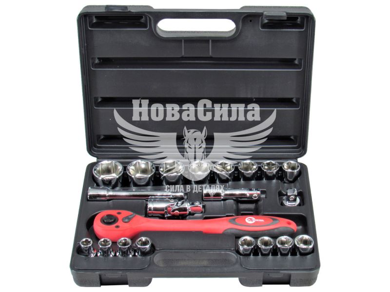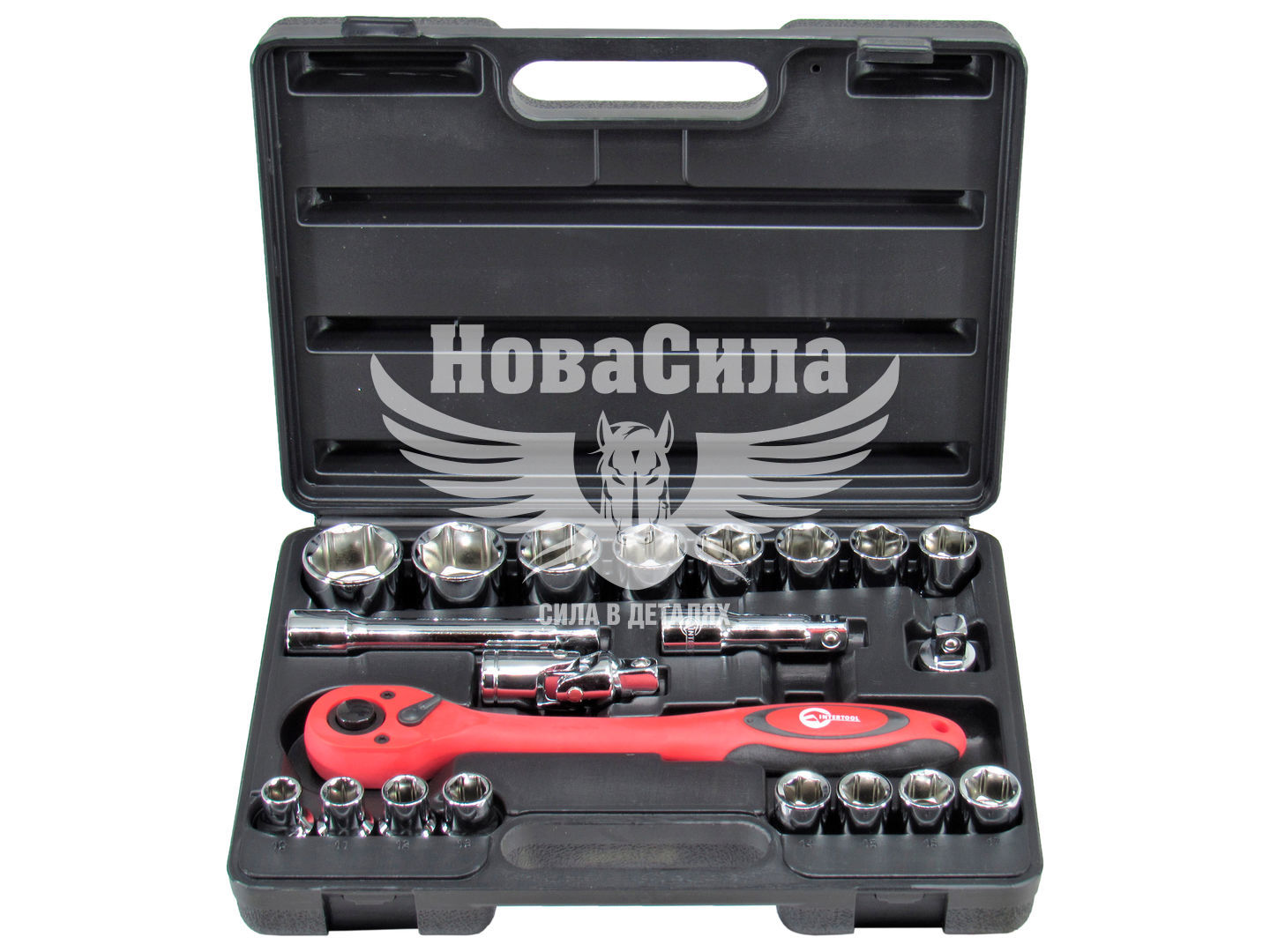 Професійний набір інструментів INTERTOOL ET-6021 включає в себе 21 одиницю. Інструменти розміщені в кейсі з ударостійкого пластику з надійними замками і зручною ручкою. Основна увага в INTERTOOL ET-6021 приділено торцевих голівок - в даному наборі їх 16, діаметром від 10 до 32 мм. Крім того, професійний набір інструменту INTERTOOL ET-6021 включає комірець, ключ з тріскачкою з квадратом 1/2 - дана модель відрізняється винятковою м'якістю і плавністю в роботі. Всі інструменти виготовлені з хром-ванадієвої сталі - матеріалу виключно високої якості, а також мають спеціальне антикорозійне покриття.