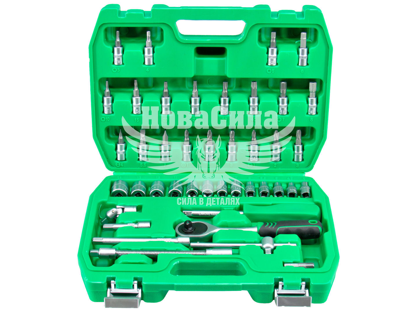 Набір поставляється в пластиковому кейсі, який служить аксесуаром для зберігання і транспортування інструментів.