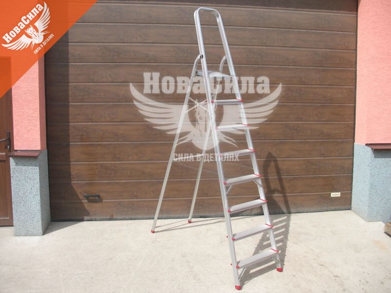 Драбина алюмінієва LT-1008 ТМ INTERTOOL виготовлена з міцного алюмінієвого профілю. Легко розкладається і складається, має 8 нековзних рифлених щаблів і майданчик, а також зручний поручень. Висота до платформи - 1720 мм, витримує навантаження до 150 кг, важить 6,3 кг. Оснащена пластиковими наконечниками на ніжки, що запобігають ковзанню і дряпання поверхні. Драбина легка і практична, призначена для робіт в будівництві, при ремонті, в господарстві або саду. Відповідає європейському стандарту EN131.