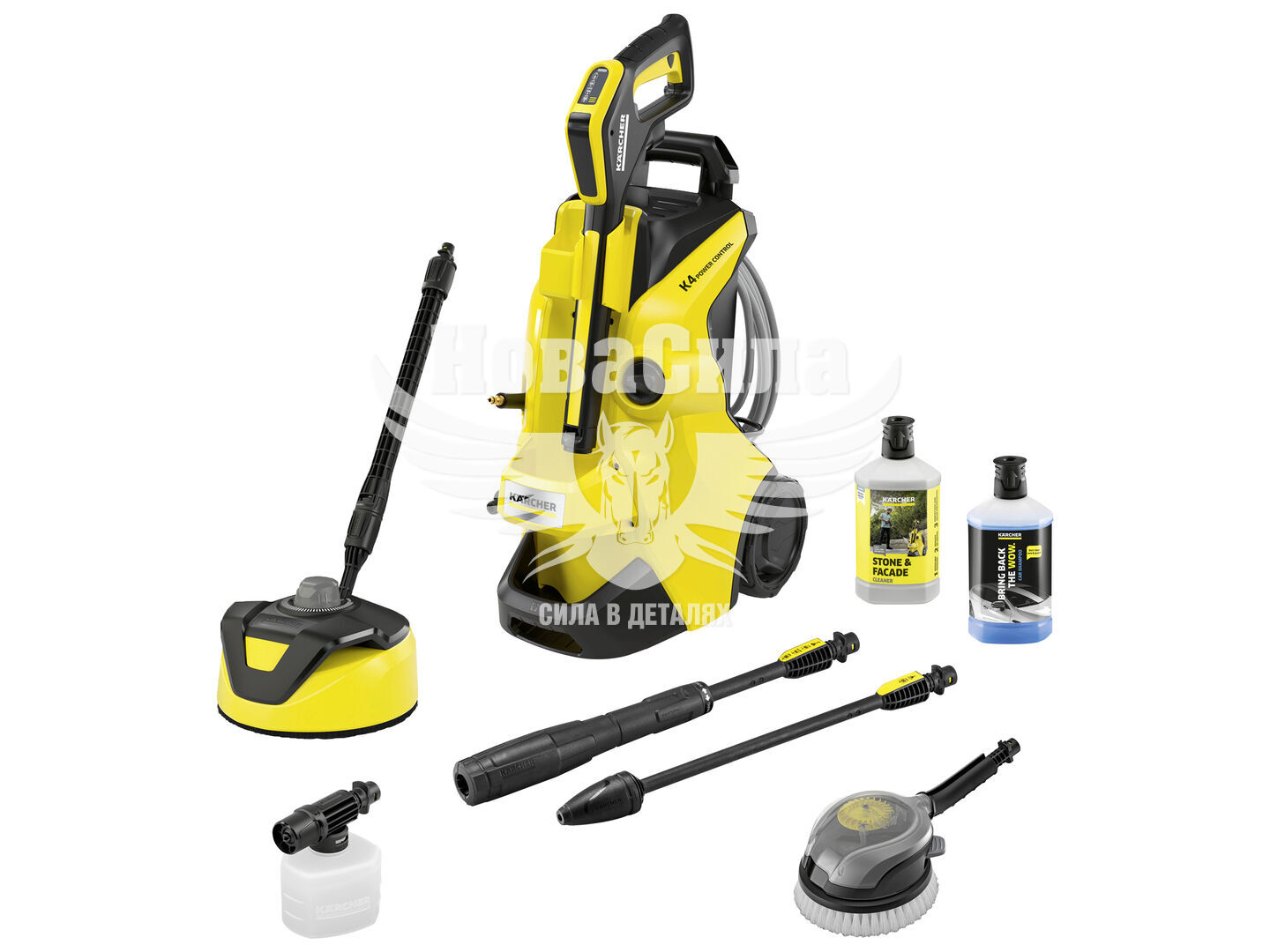 Система Plug 'n' Clean спрощує заміну миючого засобу. Шланг високого тиску PremiumFlex довжиною 8 м гарантує свободу рухів без скручування. Телескопічна ручка полегшує транспортування. Комплект Car & Home включає насадку T 5, засіб для каменю (1 л), пінну насадку, обертову щітку та автошампунь (1 л). Купити K 4 Power Control Flex – це вибір для миття авто та дому.