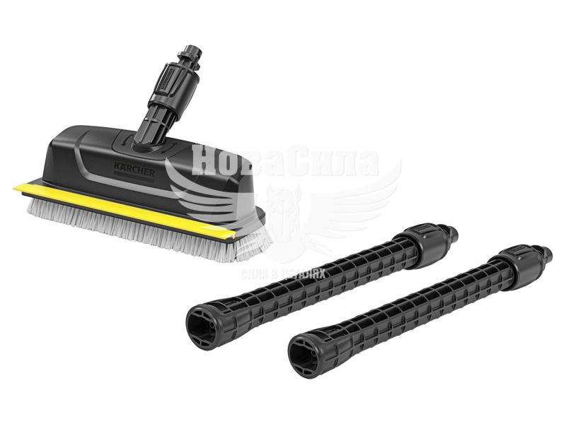 Щітка-насадка PS 30 2.644-123.0 — аксесуар для апаратів високого тиску Karcher, призначений для ефективного видалення стійких забруднень із різних поверхонь, таких як сходи, тераси, доріжки та кам’яні стіни. Оснащена трьома вбудованими соплами високого тиску, забезпечує потужне розпушування бруду, що значно прискорює прибирання. Щіткова голова обертається на 360°, дозволяючи очищати важкодоступні місця, кути та краї. Інтегрована гумова стяжка швидко видаляє брудну воду, залишаючи поверхні готовими до використання. Комбінація струменя високого тиску та механічної дії щітки перевершує традиційні швабри за ефективністю. Кромка зі щетини захищає від бризок, а компактна форма полегшує маневрування. Сумісна з апаратами Karcher класів K 2–K 7, підходить для очищення невеликих і середніх площ, включаючи балкони, гаражі та в’їзди.