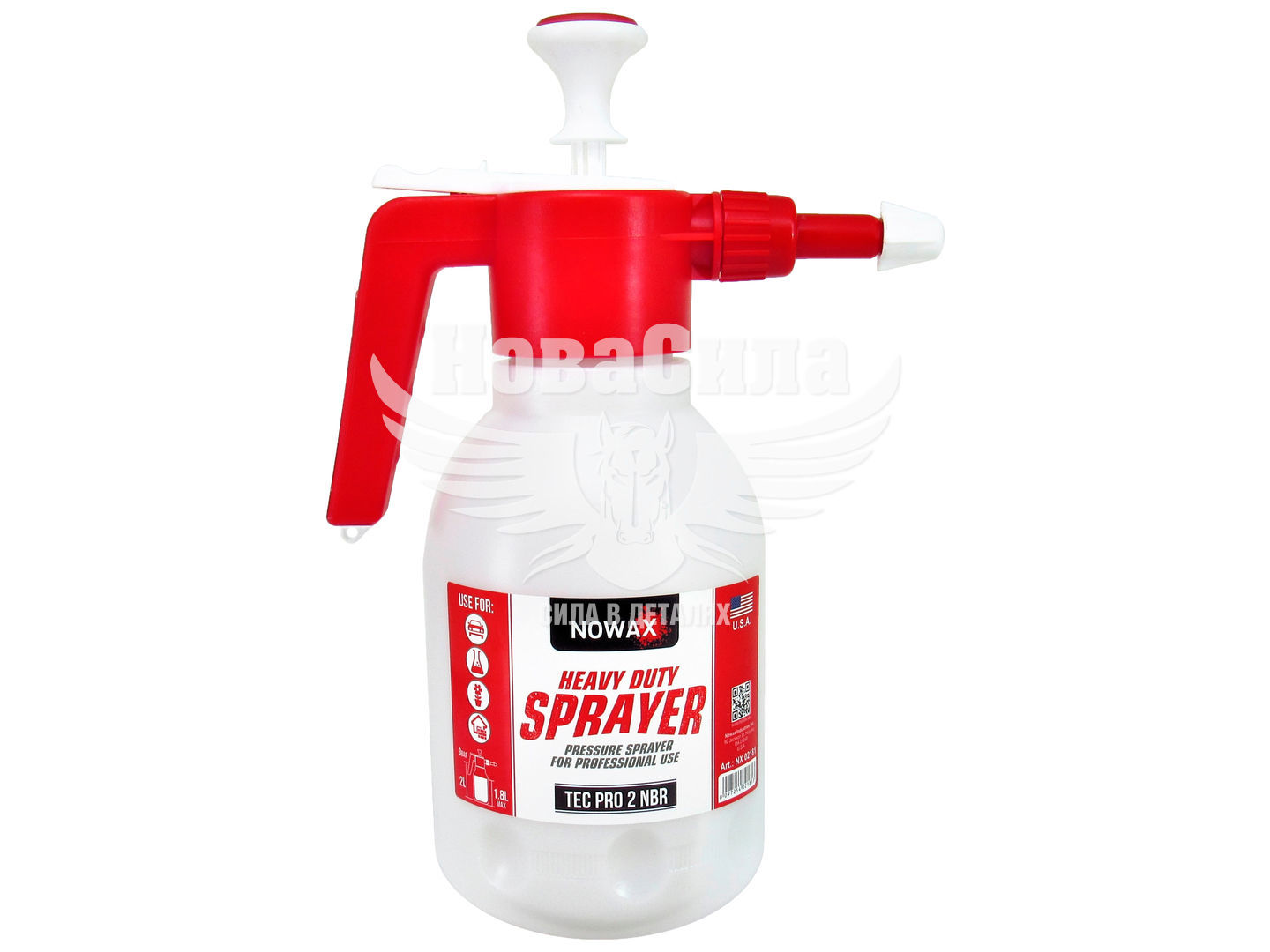 Помповий розпилювач NOWAX Heavy duty sprayer TEC PRO 2 NBR (пластик) NX02181 2л - це ефективний інструмент для догляду за автомобілем. Виконаний з міцного пластику, має об'єм 2 літра і має відмінну стійкість до агресивних хімічних, в тому числі лужних, миючих засобів. Може застосовуватися для нанесення під тиском автомобільних шампунів на кузов і диски без безпосереднього контакту шкіри з речовиною. Завдяки невеликим розмірам розпилювача, він забезпечує безпроблемну обробку навіть самих важкодоступних місць, наприклад, двигуна або супортів гальм.