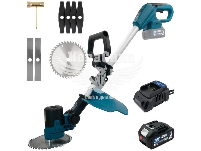 Тример оснащений потужним безщітковим двигуном, що працює від Li-ion акумулятора 20 В ємністю 4 А*год, завдяки чому забезпечується висока продуктивність, енергоефективність та тривалий термін служби. Швидкість обертання валу регулюється в діапазоні 0 – 5000 об/хв, що дозволяє підбирати оптимальний режим для різних умов роботи.