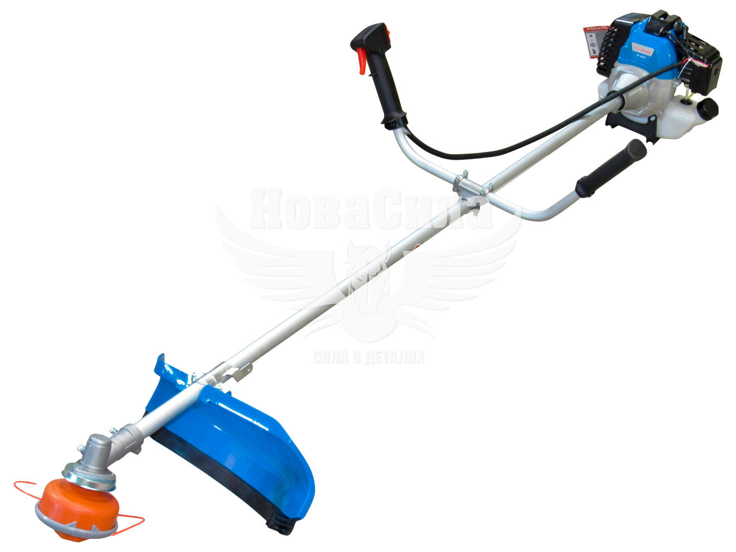 - Різальне обладнання: трилопатевий ніж та напівавтоматична котушка з волосінню діаметром 2.5 мм