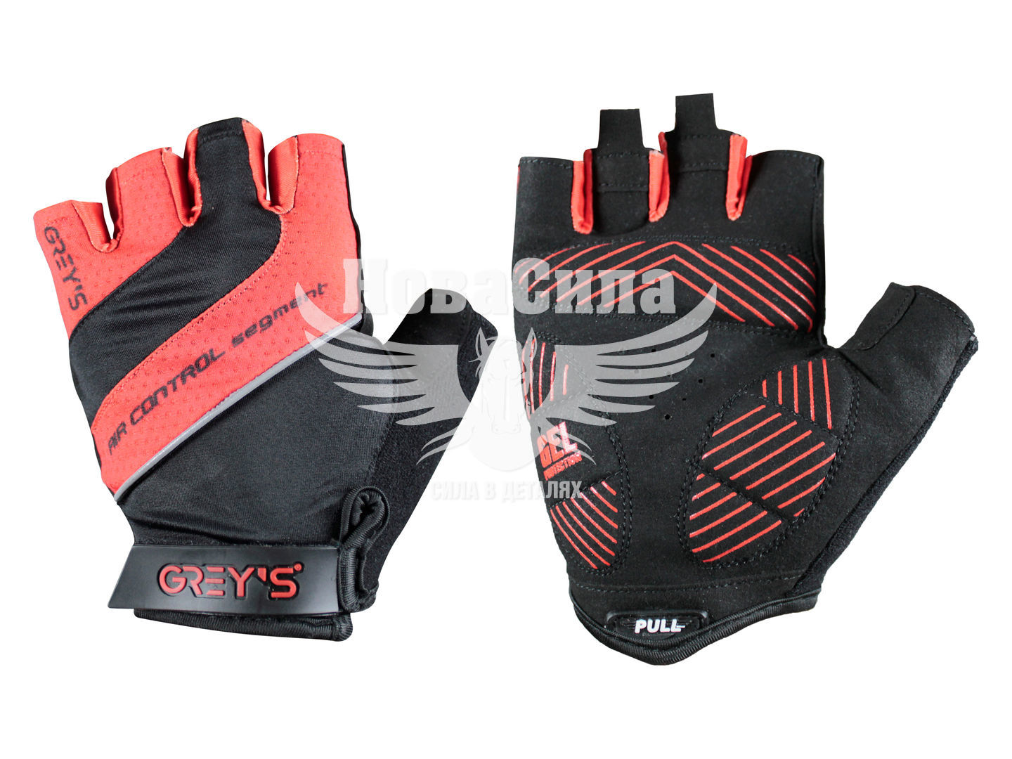 Рукавиці (Greys) M короткі пальці, гелеві вставки чорні/червоні GR18332